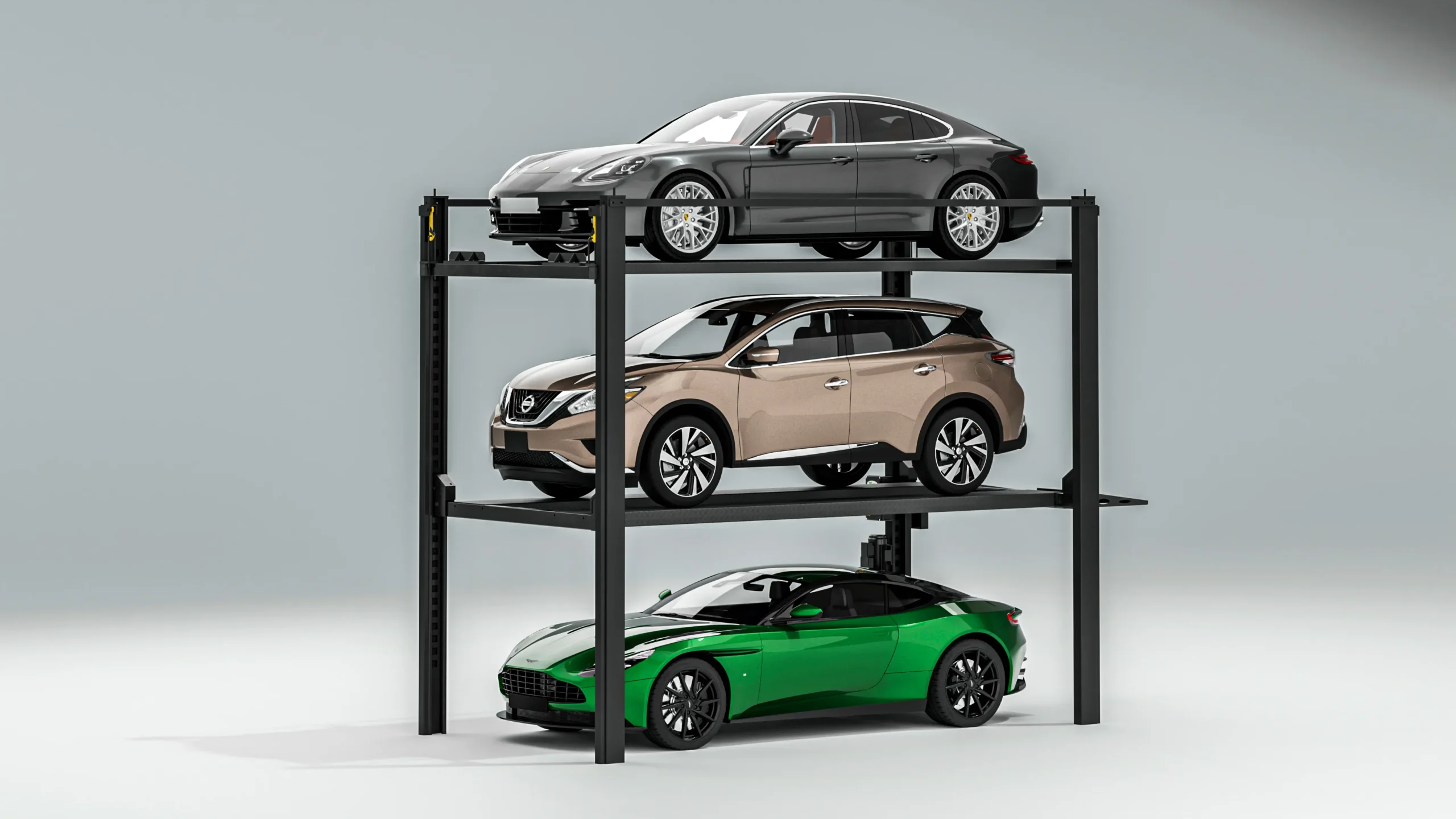 Store 3 cars over each other (ground + 2 upper levels), maximizing parking density in limited space.
